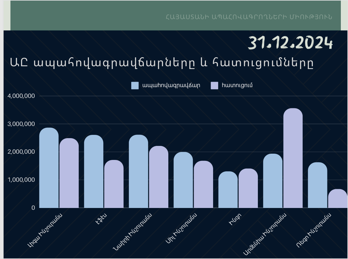 Ներկայացնում ենք Հայաստանում գործող ապահովագրական 7 ընկերությունների հավաքագրած ապահովագրավճարներն ու վճարած հատուցումները 2024թ․ ընթացքում․